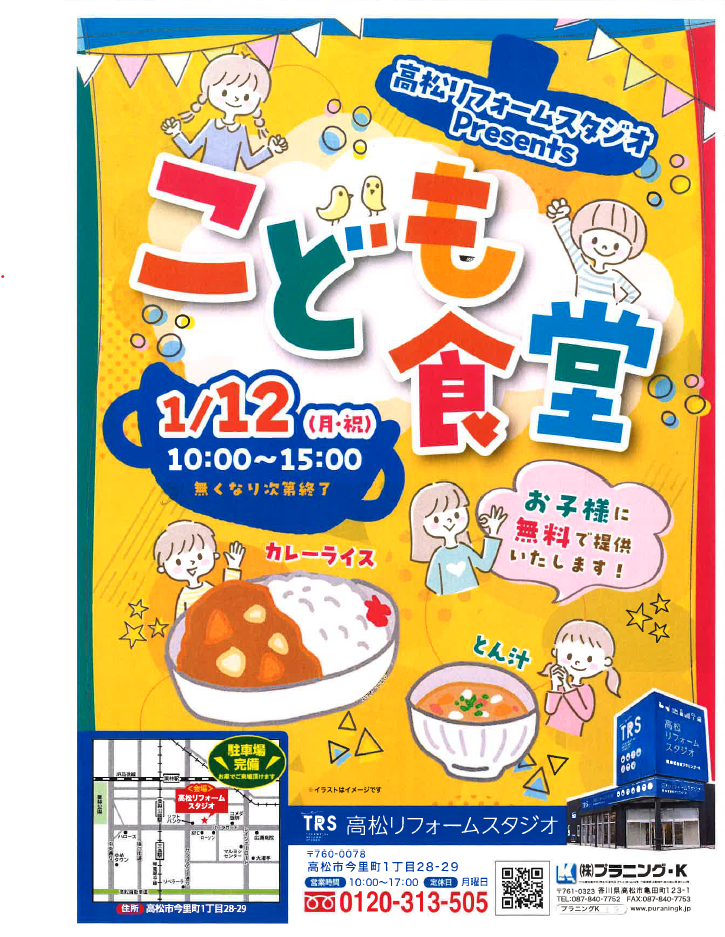 <POINT1>1月12日(月)10:00~15:00 子ども食堂を開催!カレーと豚汁をお子様に無料で提供いたします!